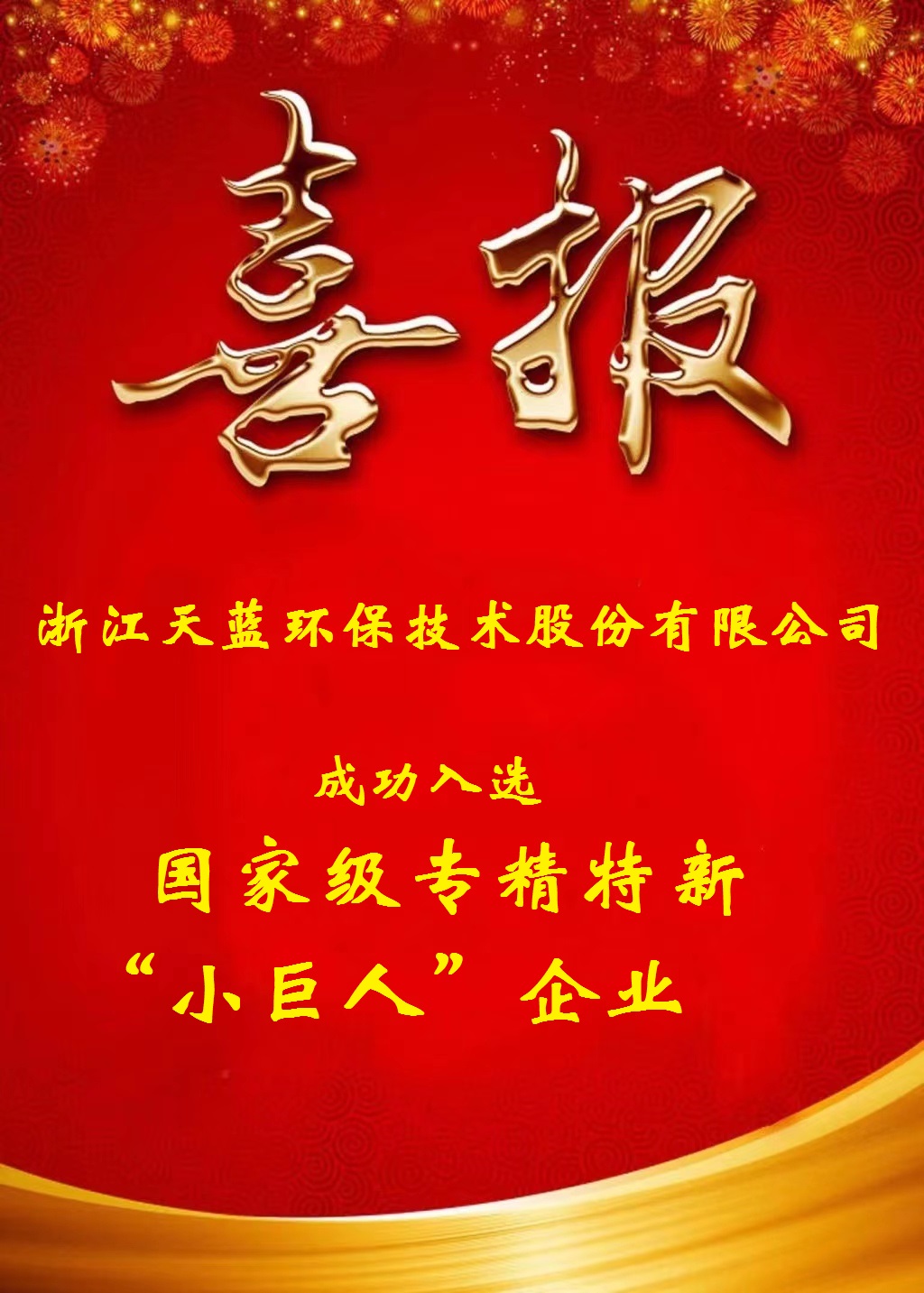 近日,浙江省經(jīng)濟(jì)和信息化廳發(fā)布了《關(guān)于浙江省第四批專精特新“小巨人”企業(yè)和第一批專精特新“小巨人”復(fù)核通過(guò)企業(yè)名單的公示》,天藍(lán)環(huán)保憑借在大氣污染治理領(lǐng)域的技術(shù)創(chuàng)新綜合實(shí)力和市場(chǎng)占有率,成功入選國(guó)家級(jí)專精特新“小巨人”企業(yè)名單。